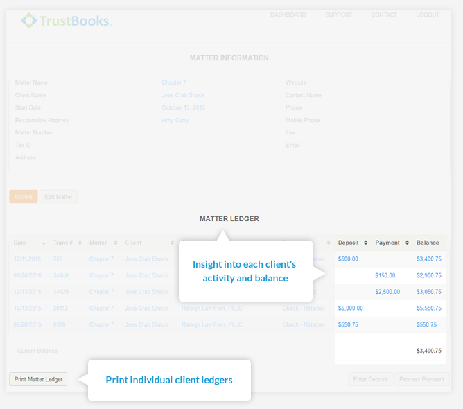 Filter by client, payee, date range, responsible attorney, etc. – you’re in control of the report you want and need.