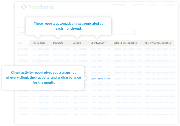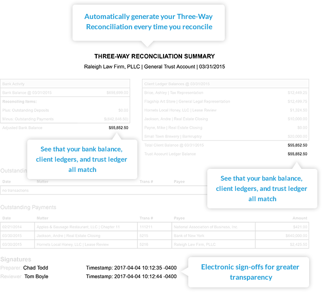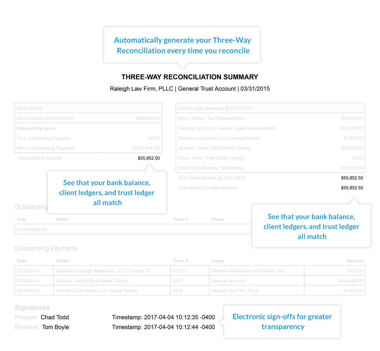 Automatically-generated reports that meet State Bar requirements for compliance.